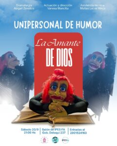 LA AMANTE DE DIOS Unipersonal de Humor Sábado 20 de septiembre. A las 21:00. SUM IPES Florentino Ameghino. Deloqui 237 ENTRADAS: 2901 52 4163 Si te gustó compartilo