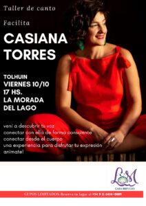 TALLER DE CANTO Facilita CASIANA TORRES. Viernes 10 de octubre. A las 17:00 LA MORADA DEL LAGO. Tolhuin CUPOS LIMITADOS: 11 6404 8089 Si te gustó compartilo