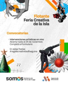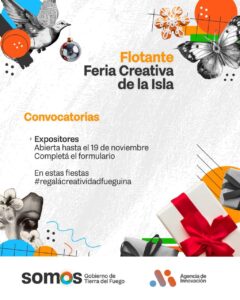 La Agencia de Innovación invita a creativos, productores y artistas a participar de una nueva edición de Flotante Feria Creativa de la Isla, que se realizará en diciembre en Ushuaia y Río Grande, bajo el lema: “En estas fiestas, regalá creatividad fueguina”.