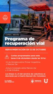 Cabe mencionar que debido a estas intervenciones, las líneas A y D del servicio de transporte público modificarán momentáneamente su recorrido, desviando su circulación por el barrio Borsari (ex Colombo).