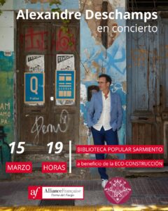 ALEXANDRE DESCHAMPS / En Conierto Domingo 15 de marzo. A las 19:00. BIBLIOTECA POPULAR SARMIENTO. San Martín 1589 RESERVAS: +54 9 2901 47-5911 Auspicia Alianza Francesa. A beneficio de la ECO-CONSTRUCCIÓN Si te gustó compartilo