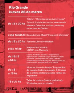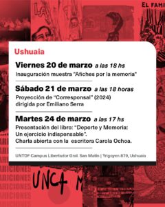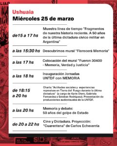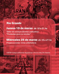 Río Grande, 18 de marzo de 2026.- La Universidad Nacional de Tierra del Fuego, Antártida e Islas del Atlántico Sur (UNTDF) invita a la comunidad a participar de las actividades organizadas en el marco de las Jornadas por la Memoria, a 50 años del golpe de Estado de 1976.