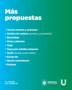 La Municipalidad de Ushuaia, a través de la Subsecretaría de Inclusión Social, informa que se encuentran abiertas las inscripciones online para los talleres que se dictarán en los distintos centros comunitarios de la ciudad.