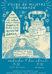 El sábado 11 de Abril a las 1530hs se realizará el Taller » Voces de Mujeres» a cargo de Ana Lucía Escobar y Laura Gunter. Participará como invitada Maite Celaya.
