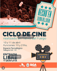 La Asociación Civil del Audiovisual Fueguino, junto a la Municipalidad de Río Grande, te invitan a disfrutar de un ciclo de cine bien nuestro: producciones realizadas íntegramente en la provincia, por profesionales fueguinos que le ponen el cuerpo, el alma y la cámara al arte audiovisual