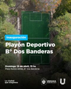 La Municipalidad de Ushuaia, a través de la Secretaría de Planificación, Obras y Servicios Públicos, inaugurará este fin de semana el nuevo playón deportivo del barrio Dos Banderas. El acto se llevará a cabo el domingo 19 de abril a las 15 horas en la Plaza Nunca Jamás.