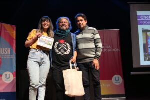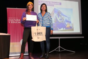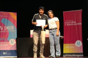 Gabriela Muñiz Siccardi, viceintendenta de Ushuaia, realizó junto a las y los funcionarias la entrega de un presente conmemoratorio a las y los artistas, así como la presentación de la resolución que declara a EMUSH de Interés Municipal, realizada por el Concejo Deliberante