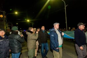 Antes de la medianoche, la bandera fue trasladada por Veteranos de Malvinas por avenida Maipú, desde la Iglesia de Nuestra Señora de la Merced hasta la plaza, donde fue recibida con
