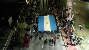 A lo largo de la noche, junto al icónico monumento que cumple 30 años desde su inauguración, la plaza Malvinas fue un espacio de encuentro que mantuvo presente, esencialmente, la