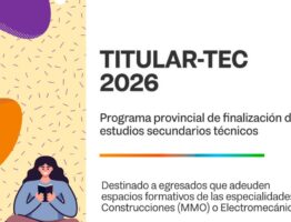 El Ministerio de Educación de la provincia de Tierra del Fuego, AeIAS informa que se encuentran habilitadas las preinscripciones para el “TitularTec 2026”, el Programa provincial de finalización de estudios secundarios técnicos. El mismo, está destinado para aquellos egresados de colegios técnicos que adeuden espacios formativos de las especialidades Construcciones (MMO) o Electromecánica y así […]