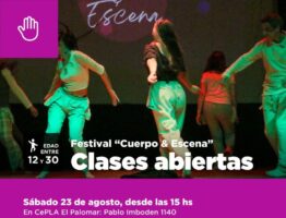 → Lee más2da Edición del Festival Sábado 23 de agosto. De 15:00 a 18:00 CEPLA El PALOMAR Pablo Imboden 1140, ENTRADA LIBRE Y GRATUITA. Una jornada de clases abiertas destinada a jóvenes de entre 12 y 30 años. La propuesta comenzará a las 15 con una clase de K-POP para nivel principiante a cargo de Tatiana Díaz, […]