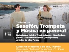 TALLERES DE SAXOFÓN, TROMPETA Y MÚSICA EN GENERAL Lunes 08 y Martes 09 de septiembre. A las 17:30 Estadio Cochocho Vargas Torre Nº1 – 2º Piso Sala de ensayo de la Banda de Música. ENTADA LIBRE Y GRATUITA La Banda contará con la participación especial de los destacados músicos provenientes de las Islas Faroe: Kristina […]