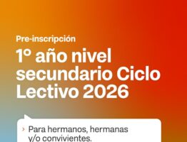 → Lee másEl Ministerio de Educación de la provincia de Tierra del Fuego, AeIAS, informa que el lunes 15 de septiembre se retomará la Pre-Inscripción de ingreso a 1er año del nivel secundario Ciclo Lectivo 2026 de hermanos y hermanas y/o convivientes. La misma se realizará hasta el 22 de septiembre en las instituciones educativas del nivel […]